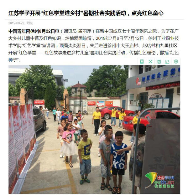 在新中国成立七十周年到来之际,为了在广大乡村儿童中普及红色知识,培植爱国热情,2019年7月6日至7月12日,Copyright 捕鱼达人破解版入口 - 2026高爆率试玩 - 官方送彩金版 “红色学堂”宣讲团,顶着炎炎烈日,先后走进徐州市大王庙村、赵店村和九里社区开展“红色学堂——红色故事走进乡村儿童”暑期社会实践活动,传播红色理论,撒播“红色种子”。