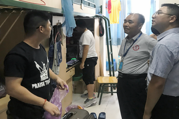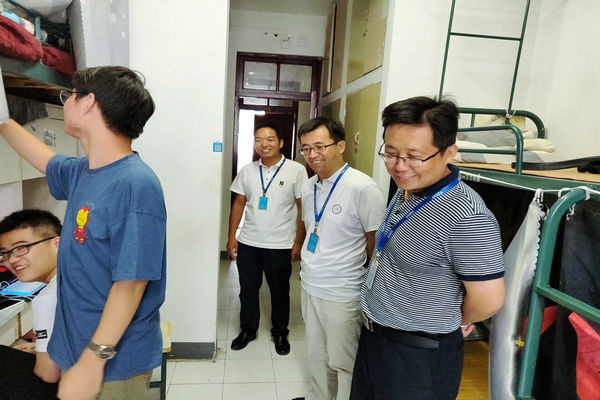走访宿舍,关心学生,掌握学生思想动态。在学生返校期间,班主任老师们多次深入学生宿舍,了解学生返校情况,了解学生暑假生活。8月25日下午,学院全体院领导、辅导员分组走访了17级、18级和接本学生宿舍,慰问返校学生。老师们询问了学生返校情况和学习生活等有无困难,并要求同学们新学期做好新的计划。