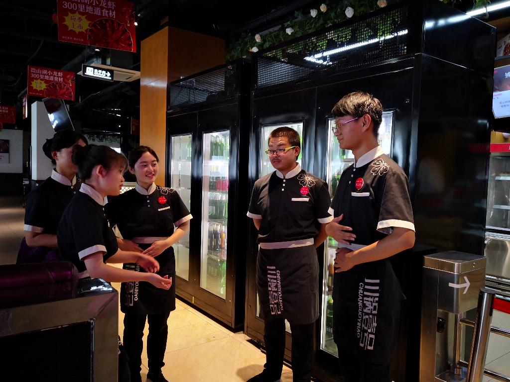 7月8日上午,小组进行了暑期社会实践活动出征前的会议,在本次会议上指导老师向大家介绍的了本次暑期社会实践活动的的活动时间、活动地点、活动目标、活动任务、活动的具体安排、活动期间的注意事项,最后鼓励大家激活自我青春因子,勇于攫取,直面来自企业一线的工作挑战。7月9日上午,实践组成员来到了1818美食广场的川锅一号实体店。来自川锅一号人力资源部门的房经理,以及张店长等一行人分别负责了迎接工作,并进行了相关工作内容的交流,过程中实践组成员积极踊跃的发言,纷纷谈及自己对本次暑期实践活动的想法。接下来两个星期的时间里,在企业导师和校内老师的共同指导下,在川锅一号门店里从事了各个岗位相关工作,通过系统的观察和实战,基本梳理企业运作的规律,与此同时,立足于顾客、服务人员的角度开展了系统的调研,收集有效的数据。