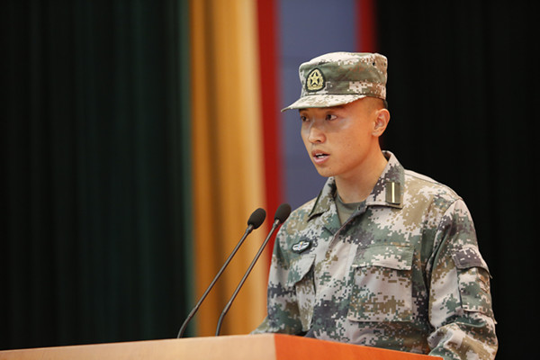 军训团二营六连连长高彭伟代表承训教官承诺,表示将认真履行教官职责,以身作则,文明施训,科学施训。化学工程学院新生辅导员赵镇代表随训干部承诺,将全力协助教官完成军训工作,履行好为学生军训把好舵、掌好帆、稳住心的航海员职责。工商管理学院电子商务192班王鑫宇同学代表全体受训学生承诺在军训中服从命令听指挥,养成良好文明习惯,高质量地完成军训任务。