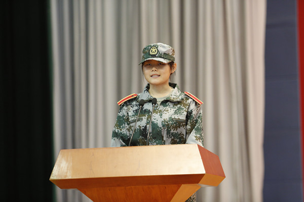李书记以9月16日为切入点,带领大家回顾了周恩来总理五四运动期间组建青年学生进步团体——觉悟社的革命故事、回顾了淮海战役等重要历史事件,形象的诠释了习近平总书记强调的“爱国,是人世间最深层、最持久的情感”的深刻内涵。她强调,作为中国特色社会主义新时代的青年生力军,实现中华民族伟大复兴的中国梦,是时代赋予同学们的历史使命,更是国家和民族交予同学们的历史责任。她希望同学们能以饱满的热情、昂扬的斗志、顽强的毅力迎接军训的挑战,积极向军人看齐,做到听党指挥,能打胜仗,作风优良,主动与榜样对标,积极锤炼品格,磨练意志,升华情操,以优质的军训成果向中华人民共和国成立70周年献礼、为建校55周年添彩!
