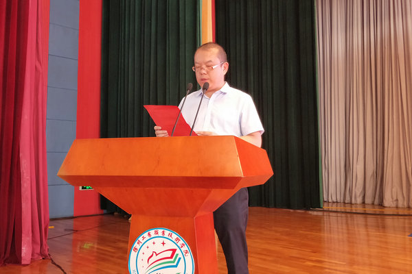 开学典礼在庄严的国歌中拉开帷幕。首先,党总支委员、旅游管理教研室主任、酒店管理191班班主任,刘勇老师向广大新生介绍了我院教师的教学风采,鼓励新生满怀热情,坚定信念学好专业知识,以饱满的姿态迎接接下来的大学生活。希望我们的2019级新生在未来三年的徐工院生活与学习中,能够学会积极、努力、感恩、奉献,成长为有职业技能、有社会责任感的优秀人才。