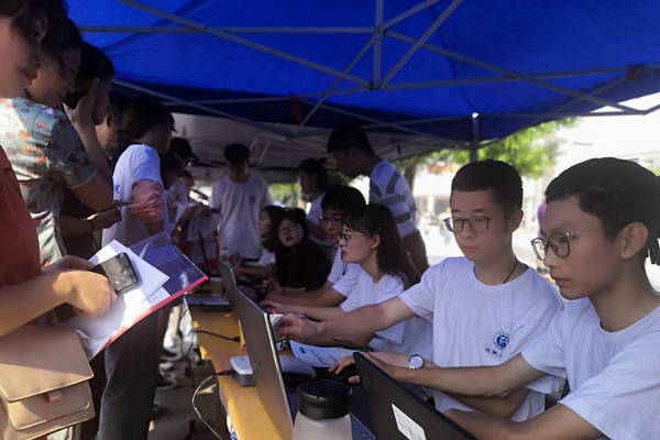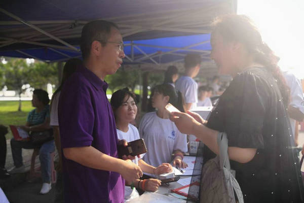 为迎接近千名的新同学,迎新工作的每个环节都安排了老师和志愿者,校园中到处都有志愿者们帮助新生搬运行李、指引路线、答疑解惑的忙碌身影。志愿者高效的办事效率,贴心的服务态度,赢得了新生及其家长对学院的认可。