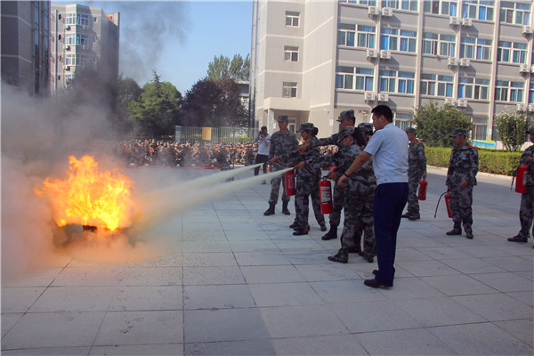 安全疏散演练后,张警官为在场的所有师生讲解了灭火器、防毒面罩的使用方法,并现场指导学生用干粉灭火器进行了初起火灾的扑救。随后参训学生、学生干部、宿管员、保安进行了灭火练习,提高了广大师生初起火灾的扑救技能。