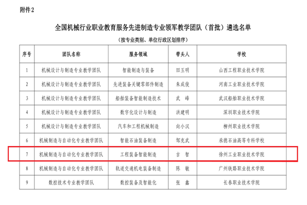 经过专家委员会评审,捕鱼达人破解版 机电工程学院“机械制造与自动化专业教学团队”被评定为首批“全国机械行业职业教育服务先进制造专业领军教学团队”。