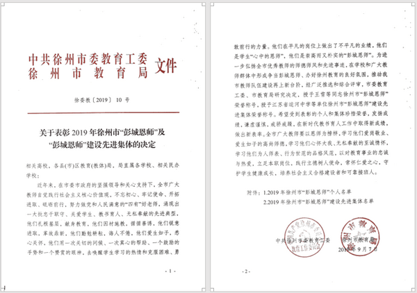近日,中共徐州市委教育工委、徐州市教育局联合发布了《关于表彰2019年徐州市“彭城恩师”及“彭城恩师”建设先进集体的决定》(徐委教[2019]10号)。捕鱼达人破解版 教师詹新生获得“彭城恩师”荣誉称号,捕鱼达人破解版 工商管理学院财经管理教研室获得“彭城恩师”建设先进集体荣誉称号。