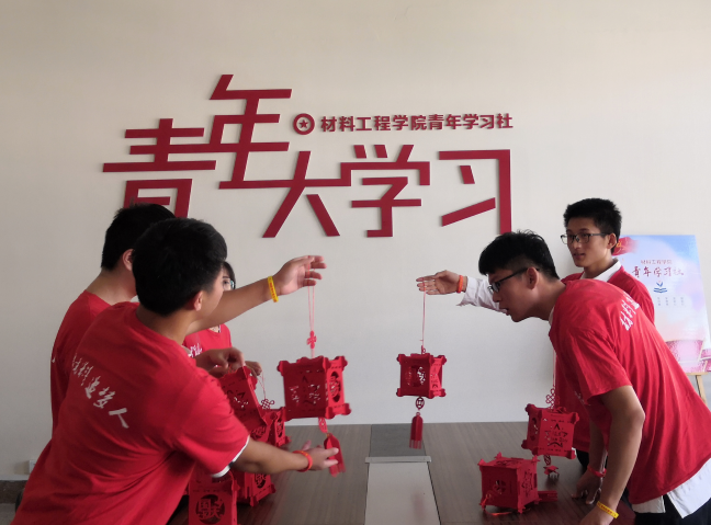 材料工程学院团总支组织“材子材女”们传承工匠精神,用自己的“手艺”为祖国点赞,大家制作了橡胶手环,一支支手环就是一个个祝福,黄的赛金红的似火,将中华儿女的自豪和喜悦衬托。同学们还自发制作起民俗灯笼,高高悬挂,每个人都用自己的方式表达着对祖国母亲的爱。最后,材子材女们来到幼儿园,和小孩子们一起手绘国旗,将美好的的愿景寄托,传递给祖国的花朵。大家用谁会的画笔,传递对祖国母亲爱,分享国富民强的幸福感。