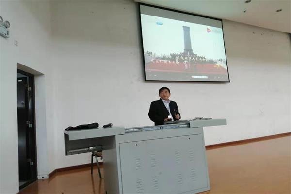 全体校领导以《 壮丽七十年 奋斗新时代》为主题开展教学,从“改革开放之前的中国”、“改革开放之后的中国”、“进入新时代的中国”三个方面梳理了70年新中国走过的伟大历程,站在历史和科学的视角,阐述了70年新中国社会主义革命、建设和改革的现实启示,让学生真切感受70年来新中国在综合国力、人民生活、市场活力、国际地位和国际话语权等方面创造的辉煌成就。让学生认识到,在中国特色社会主义新时代的当下,唯有以习近平新时代中国特色社会主义思想为指引,不懈奋斗,才能在实现中华民族伟大复兴的中国梦的接力跑中,接稳接力棒,跑出好成绩。校领导走上思政课讲台,用坚定的信仰感染学生,用渊博的学识教育学生,用图文并茂的教学课件、深出浅入的教学语言给学生带来“思想理论盛宴”,得到了学生的广泛肯定和点赞。