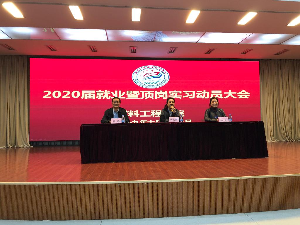 本次就业暨顶岗实习动员大会对材料工程学院的就业工作具有重要意义,使同学们明确了顶岗实习的要求、形式、步骤和目标,充分认识到顶岗实习的重要性和必要性,认清了当前的就业形势,明确了就业的目标方向,为今后进一步开展材料工程学2020届毕业生的就业工作奠定了良好的基础。