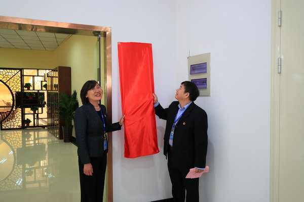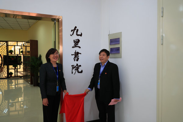 张登宏院长和李红副书记共同为九里书院揭牌。