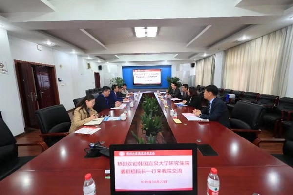1022日下午,韩国嘉泉大学研究生院院长姜珉植一行来捕鱼达人破解版 访问交流,随行的有嘉泉大学研究生院主任教授金山月、行政室科长权起映、留学生负责人金锡重、刘亚东。捕鱼达人破解版 副院长鲍桂楠及继续教育学院院长、教育培训处处长慕金强与来宾进行了会谈。