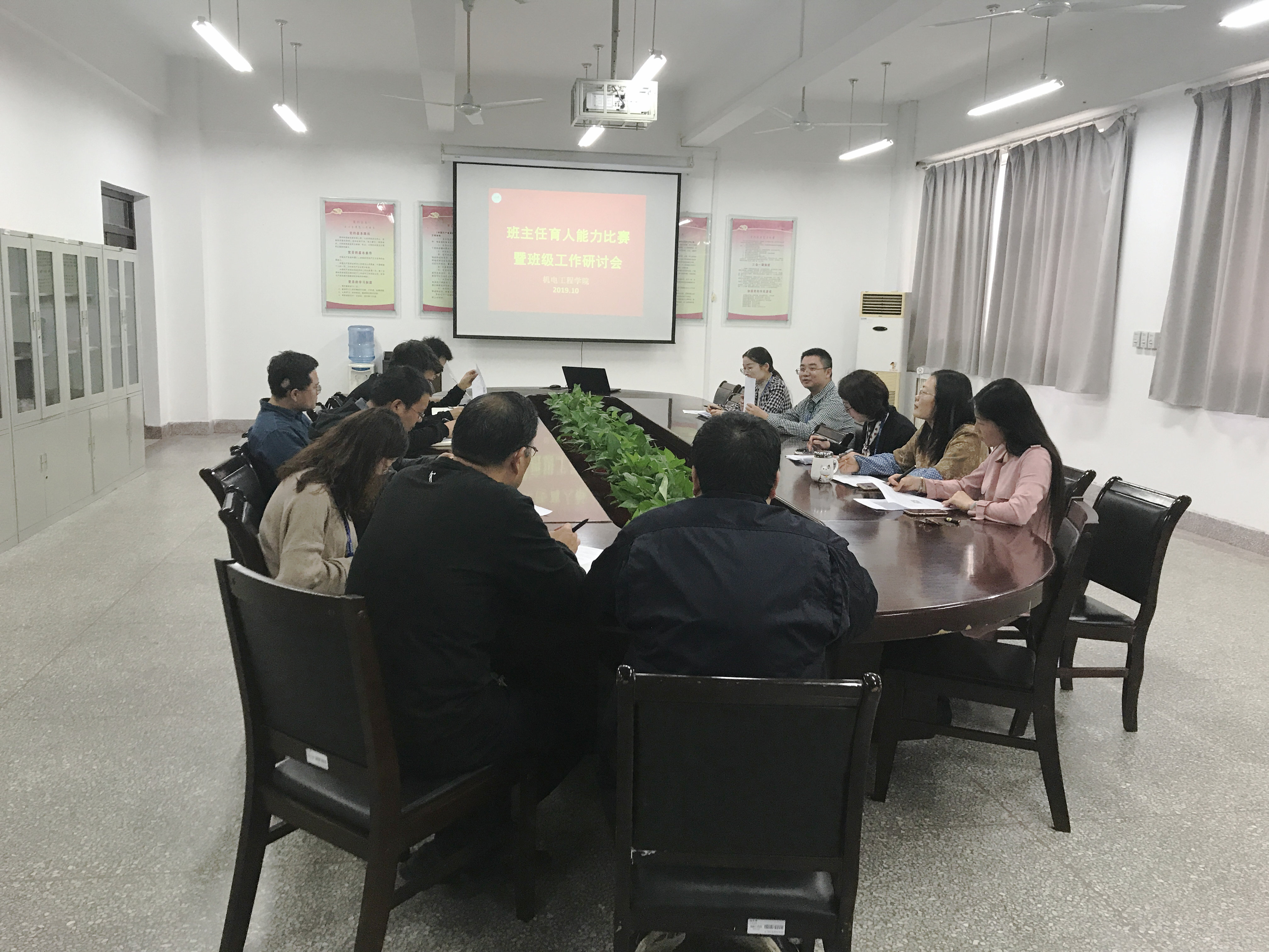 为加强班主任队伍建设,提高班主任育人能力,强化班级管理,机电工程学院于1023日下午在B17-307会议室举行班主任育人能力比赛暨班级工作研讨会,学院副院长陈竹,辅导员老师、部分班主任参加了此次活动。
