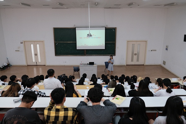 杨晶老师的巡讲主题是“构建人类命运共同体思想的内涵”,她先以当前学生们比较关注的热点新闻进行导入,用独特的切入点引起了学生们的好奇心,把课堂气氛完全启动起来,然后通过“世界怎么了”、“我们怎么办”、“意义是什么”三个模块,并结合大量生动的新闻故事以及身边故事把“人类命运共同体思想”的内容层层铺开,让思政课有意思、有意义,杨晶老师坚持的这种“热点+生活+深度”的讲课方式也赢得了兄弟院校师生的赞赏。