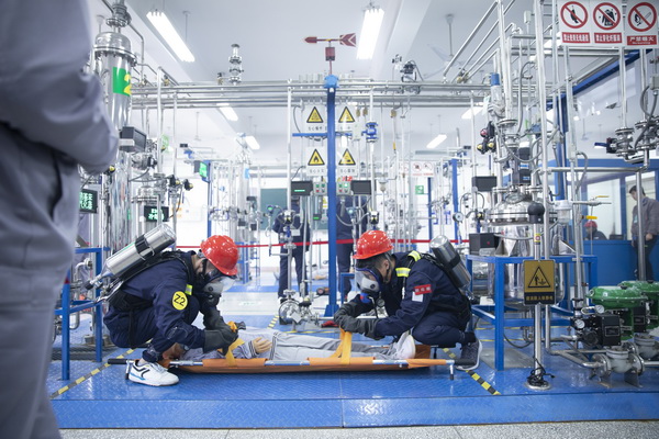 “现代化工HSE应用技能竞赛”包括HSE理论知识考核、化工安全事故应急救援桌面推演以及体感式HSE装置操作三个竞赛单元。HSE技能竞赛桌面推演项目选取重特大化工安全事故案例,采用3D动画技术模拟事故场景,参赛队员自主选取角色,执行人物指令,进行隐患排除、事故处置和应急救援等技术活动。HSE理论知识考核个人对化工安全、环境保护和职业卫生等方面的知识与技术及法规的掌握。体感式HSE装置操作项目采用了班组联合操作,用电子脉冲信号模拟物料投放,用声光电气模拟安全事故环境,在仿真实景中,进行安全事故处置操作。