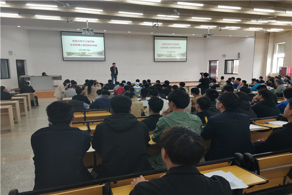 10月31日下午,2020届全体毕业生参加了在B18东、西侧报告厅举办的信息技术专业群和电子电气专业群毕业生就业服务活动。学院邀请了海信集团人力资源总监钱先生作了正确择业专题报告;邀请杭州振华科技集团研发设计部长,我院2007级校友沈海亮分享了职场发展经历,指导毕业生精准、高效的求职择业。
