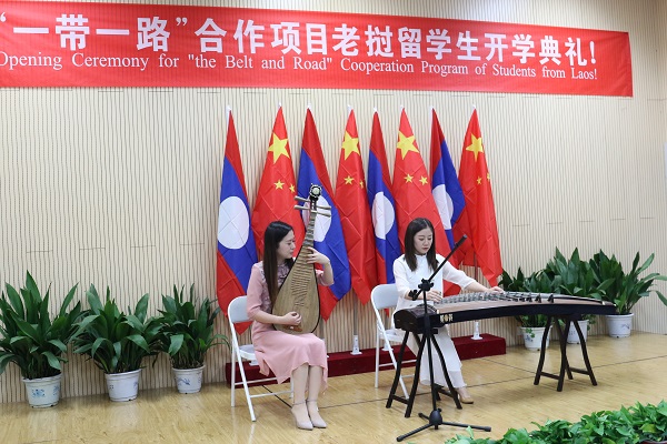 开学典礼最后安排了文艺演出,国际教育学院广大老师学生表演了精彩的文艺节目:《老挝民族舞蹈》姿态万千,纤柔的舞姿,曼妙的身形赢得了阵阵的啧啧称赞;吉他伴唱《童话》声线优美,曲调悠扬,让在座观众无不喝彩;民乐合奏《琵琶语》,时而如大珠小珠洒玉盘,时而如冰泉幽咽流水潭,满座皆惊奇于中国艺术的神奇和美妙,瞬间爆发出热烈的掌声。在中老文化的艺术融合与交流中,在友好和谐的氛围中,“一带一路”合作项目老挝学生开学典礼顺利落下了帷幕。