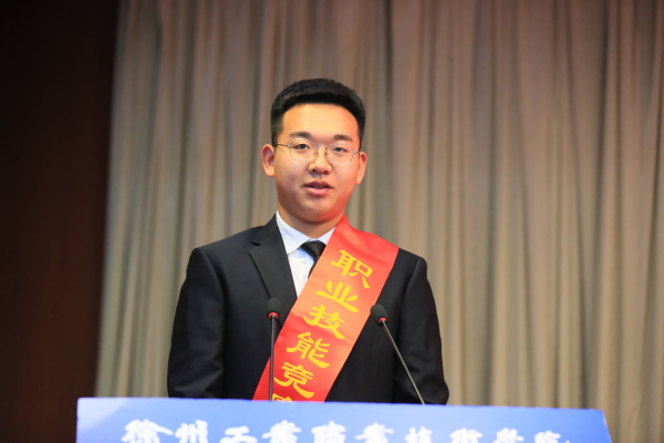 优秀学生代表、职业技能竞赛校长奖获得者王坤昊同学作了《苦练精湛技能,勇创奋斗青春》的主题发言,表达了青年学子勇担时代使命的决心。