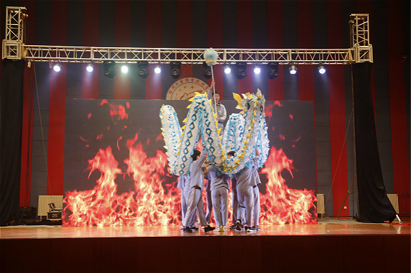 展演晚会上,各学生社团用精心编排的节目诠释了不懈追寻中国梦的青春激情和奋斗精神。龙狮协会的《舞动华夏》、健美操协会的《灵跃青春》、TBS街舞社《舞出我人生》、武术协会的《散打表演》和话剧社《恋爱是种病》等节目,用精湛的表演彰显了社团学生的青春魅力,也展现出了他们不懈努力锻炼、积极奋斗向上的人生风采。校社联的相声《群英荟萃》和美艺社的《茶道》带领现场观众一起品味了中华优秀传统文化的魅力,陶冶了情操也又一次增强了学生们传承中华优秀传统文化的信心和兴趣。纯蓝吉他社的《吉他串烧》、江苏建筑职业技术学院社联的吉他演唱《斑马斑马》和校学生会、校社联的歌伴舞《青藏高原》,歌声婉转而不失激昂,声声入心。最后吾言朗诵社《共和国风采》和大学生合唱团带来的《徐工职院校歌》、《我和我的祖国》将晚会推向高潮,他们用青春的声音唱响了对祖国的热爱,表达了作为新时代的高职学生要为实现中华民族伟大复兴中国梦而努力奋斗的精神斗志!
