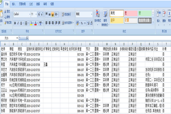 学院将学生信息、教师课表、上课教室等内容导入教学管理系统;在每一个教室张贴了对应教室号的二维码;老师上课之前打开微信扫码上课,记录老师上课时间;上课伊始,通过手机记录学生上课情况;课后,记录教学日志,并打卡下课,记录下课时间。通过一系列的系统操作,能够随时记录老师、学生上课情况。相比而言,以往学生考勤都是通过填写教学日志来完成,不仅给教学管理部门带来了大量的统计核对工作,也会影响到考勤管理的真实性和准确性。使用教学管理系统能够从费时费力的考勤工作中解放出来,实现准确、快捷、高效地统计学生课堂出勤数据。
