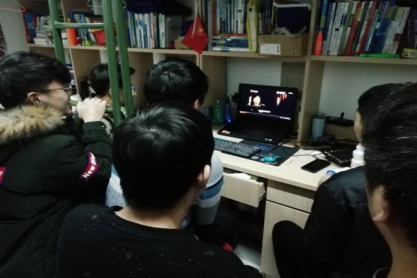 2018级学生宿舍集体观看爱国视频