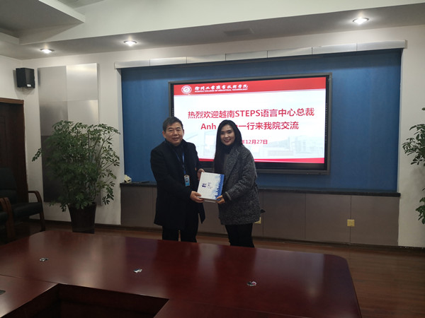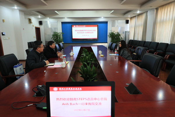12月27日,越南STEPS语言中心总裁Anh Bach女士来访捕鱼达人破解版 ,捕鱼达人破解版 院长张登宏热情接待了客人,双方就建立捕鱼达人破解版 越南留学生招生基地进行了友好洽谈,外事办副主任王建华参与了会谈。