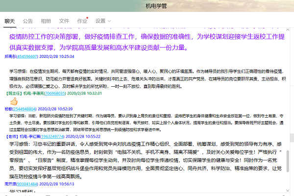 机电学院各党支部严格按照要求,充分利用网络平台,多举措组织党员开展政治理论学习。机电教工第一党支部借助线上学习的“互联网+”模式,通过“网上自学+网上交流学习心得”方式开展政治理论学习。通过学习,使全体党员加强了对当前疫情防控形势严峻性、艰巨性、紧迫性的认识,进一步把思想和行动统一到习近平总书记重要指示精神上来。