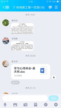 机电教工第一党支部党员在群里分享学习心得