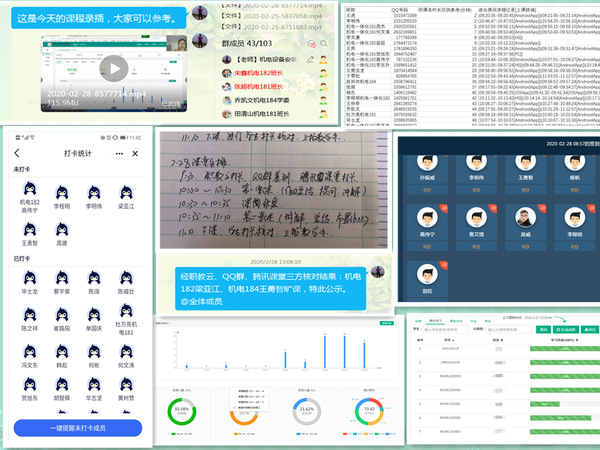 团队教师多次讨论,精心布置,分工明确。由许大华老师负责组建课程QQ群,并在职教云搭建课程,将教学课件、视频及教材的电子档上传至职教云,同时,通过QQ群布置课前预习内容,要求学生查看PPT和观看视频。团队任海东老师则负责在腾讯课堂进行直播教学,通过签到、讲解、互动、提问等多方式,了解学生的学习情况,并在课后通过腾讯课堂后台查看学生上课的时长,防止学生上课时间的缩水。此外,许大华老师又在职教云里布置课后作业,对学生所学知识进行考核,已达到巩固知识的目的。团队教师和学生通过QQ群及腾讯课堂实现了实时互动,从作业情况看,学生已熟于线上教学,达到了预期的教学效果。