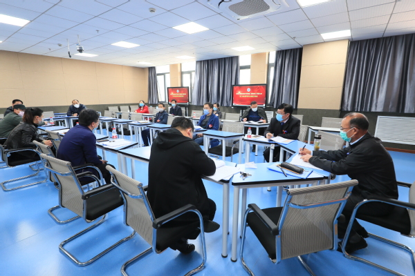 4月8日上午8:30,党委书记祝木伟在图书馆视频会议室主持召开教代会主席团会议,听取各代表团团长汇报各团讨论情况。
