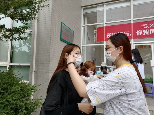 5月25日,天朗气清,风和日丽,大学生心理健康教育与咨询中心在校园内开展“呵护心灵,关'罩'自我”心理健康活动,为学生们赠送“5.25”定制款口罩,宣传心理健康知识,提醒大家呵护心灵,关“罩”自己,关爱生活。