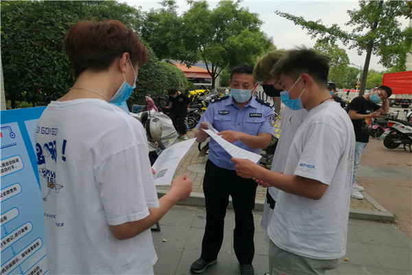 活动现场,民警为办理电动车备案上牌的师生进行车辆查验、指导填写网上备案信息,极大节省了平常来回跑、排队时间长的麻烦,在校内就能轻松办理电动车备案上牌业务。在办理业务的同时,民警还通过展板、宣传单等形式向广大师生宣传《江苏省电动自行车管理条例》,讲解电动车无牌、超员、不戴头盔、酒后驾驶等违法行为的严重后果,使师生认识到交通违法引发交通事故的危害性,切实增强师生文明驾驶和安全出行意识。