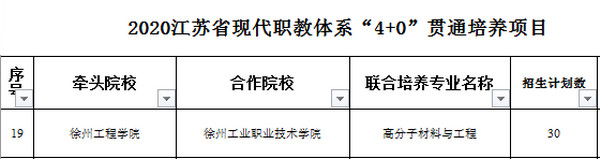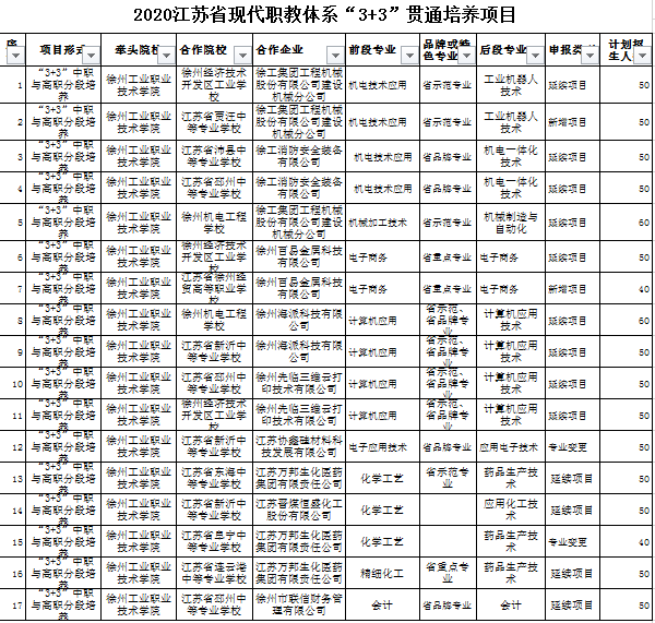 近日,从江苏省教育厅《省教育厅关于公布2020年现代职业教育体系贯通培养项目的通知》(苏教职函〔2020〕9号)文件获悉,捕鱼达人破解版 2020年现代职教体系“4+0”获批1项,实现零突破;“3+2”申报2项,获批2项;“3+3”获批17项,总数位列全省第四。现代职教体系贯通培养项目取得了新突破!
