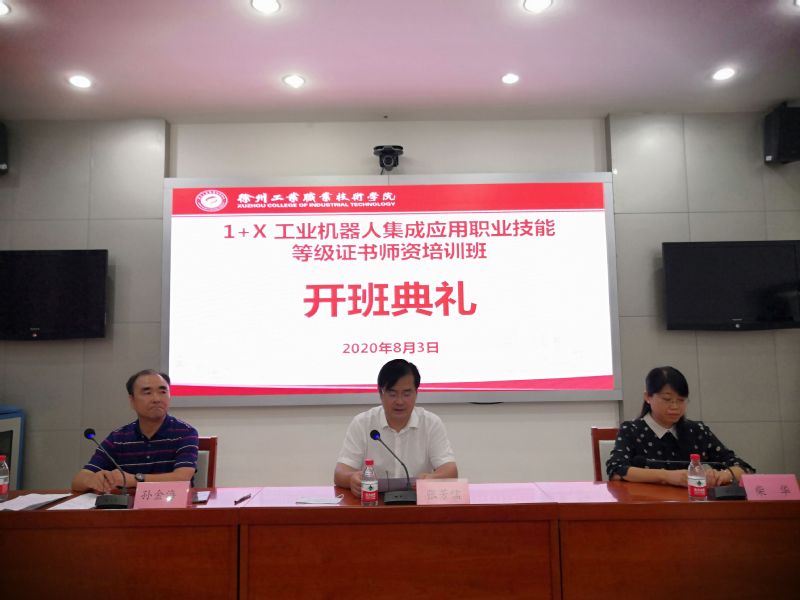 8月3日上午,由捕鱼达人破解版 机电工程学院和北京华航唯实机器人科技股份有限公司联合举办的全国第一期工业机器人集成应用职业技能等级证书师资培训班开班典礼在图书馆视频会议室隆重举行。捕鱼达人破解版 副院长张芳儒,企业副总经理柴华出席了本次会议,机电工程学院副院长余心明、徐昆鹏及来自全国各地高校的46名老师参加了会议,会议由机电工程学院院长孙金海主持。