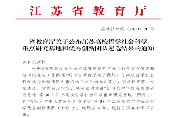 近日,在江苏省教育厅发布的《省教育厅关于公布江苏高校哲学社会科学重点研究基地和优秀创新团队遴选结果的通知》(苏教社政函〔2020〕20号)中,公布了江苏高校哲学社会科学重点研究基地和优秀创新团队的遴选结果。此次,教育厅立项了38个江苏高校哲学社会科学优秀创新团队,其中本科院校30个,高职院校8个,建设期4年。捕鱼达人破解版 吉智处长主持的“工程机械行业产教深度融合育人研究”团队获得立项,是捕鱼达人破解版 获批的首个省级哲学社会科学优秀创新团队。