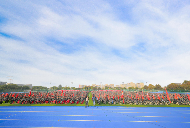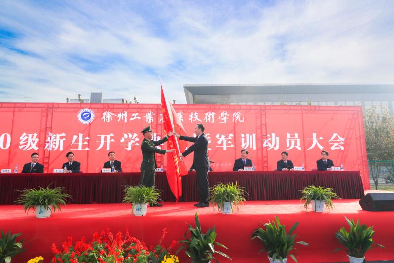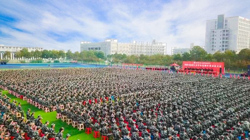 10月18日上午,捕鱼达人破解版 2020级新生开学典礼暨军训动员大会在体育场隆重举行。校领导祝木伟、李红、鲍桂楠、张芳儒、徐勇、朱作付出席典礼,各部门、二级学院负责人,2020级全体辅导员、班主任以及全体新生参加典礼。党委书记祝木伟发表讲话并为军训团授旗,党委副书记李红主持典礼,副院长鲍桂楠宣读军训团任职令,副院长张芳儒宣读表彰决定。