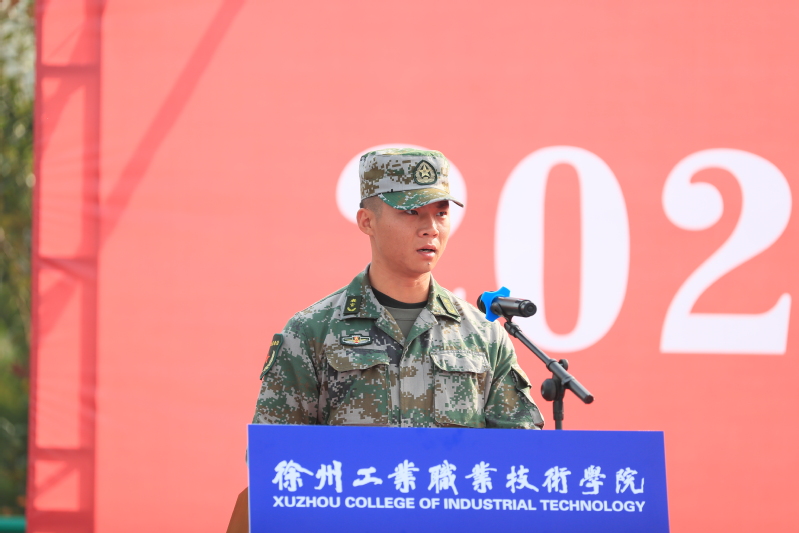 窦润堃教官代表全体教官发言,表示全体教官将会以高昂的热情和全部的精力投入到此次军训中,把严谨的工作作风和过硬的军事素质展现在大家面前,确保此次军训任务高标准、高质量的完成。