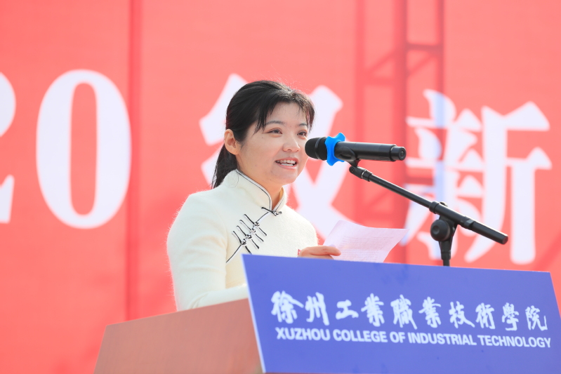 2020年江苏省职业院校教学能力大赛一等奖获得者、工商管理学院市场营销201班班主任杨晶老师发言,用生动的事例鼓励同学们在大学学习中要用力奔跑,遇见最好的自己;要学会理解和沟通,互相支持、互相成全;要学会不满足,做个积极向上的斜杠青年。