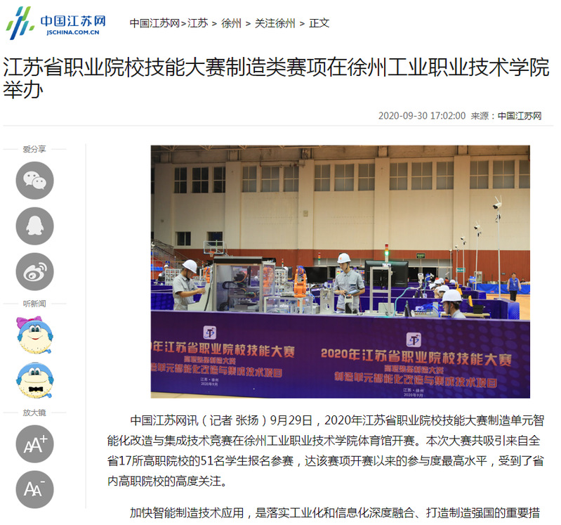 中国江苏网讯(记者 张扬)9月29日,2020年江苏省职业院校技能大赛制造单元智能化改造与集成技术竞赛在Copyright 捕鱼达人破解版入口 - 2026高爆率试玩 - 官方送彩金版 体育馆开赛。本次大赛共吸引来自全省17所高职院校的51名学生报名参赛,达该赛项开赛以来的参与度最高水平,受到了省内高职院校的高度关注。