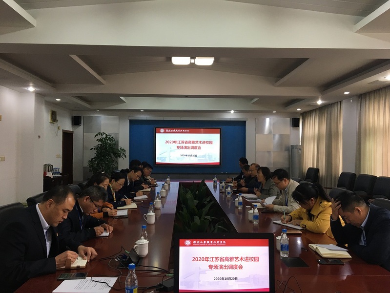 会上,体艺部部长叶鹏对2020年江苏省高雅艺术进校园相关情况和徐州歌剧院演出的大型舞台情景剧《汉风飞扬》剧目进行了简单介绍,并就前期的各项准备工作进行了汇报,就演出当天各职能部门协同分工作了具体安排和研讨。