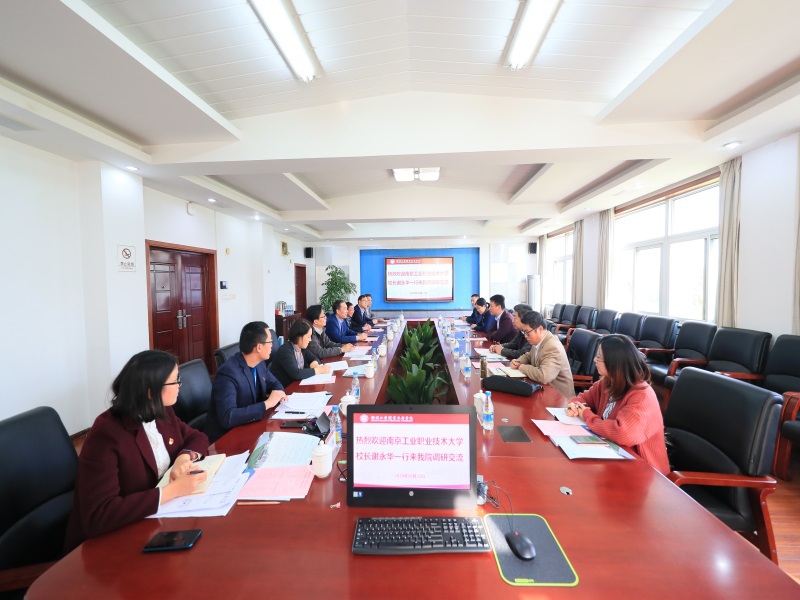 近日,南京工业职业技术大学谢永华校长一行到捕鱼达人破解版 调研交流省地方普通高校综合考核工作。捕鱼达人破解版 党委书记祝木伟及有关部门负责人参加调研活动。