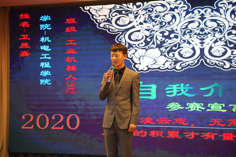 本次大赛设有选手自我介绍、情境朗诵、模拟主持等三个环节,共吸引100多名同学争相报名,经过层层选拔,最终来自各二级学院的12名选手成功晋级决赛,同台竞技、各展风采。在自我介绍环节,选手们自信洒脱、端庄大方、幽默风趣、个性迥异,有的还配合快板、乐器等才艺,每位选手都给大家留下了深刻印象;情境朗诵环节,选手们语言唯美、吐字清晰、发音准确、表达连贯,来自不同省份的同学们通过朗诵向观众展示了家乡之美,抒发了对家乡的热爱之情;模拟主持环节,选手们八仙过海、各显神通,通过天气预报、旅游节目、美食节目、访谈节目等形式向大家展示了他们扎实的理论功底、流畅的语言表达、广博的知识储备及丰富的生活阅历。
