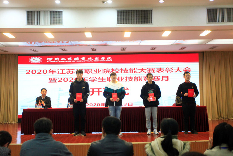 李红副书记宣读了2020年江苏省职业院校技能大赛获奖名单,捕鱼达人破解版 取得2个一等奖、6个二等奖、8个三等奖,是历届最好的成绩。主席台领导为获得三等奖、二等奖、一等奖(校长奖)的指导教师和学生代表进行了颁奖。