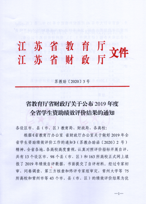 近日,江苏省教育厅、江苏省财政厅联合下发了《关于公布2019年度全省学生资助工作绩效评价结果的通知》(苏教助〔2020〕3号),经第三方核查、专家组评审和省学生资助工作绩效评价领导小组审定,捕鱼达人破解版 荣获“2019年度江苏省学生资助绩效评价优秀单位”。这是捕鱼达人破解版 连续第三年荣获“优秀”殊荣。