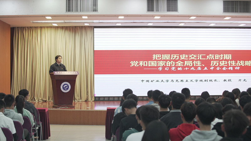 宣讲报告会上,共青团江苏省委“青年讲师团”成员、中国矿业大学马克思主义学院副院长、博士生导师亓光教授围绕党的十九届五中全会相关情况和全会精神,从《中共中央关于制定国民经济和社会发展第十四个五年规划和二〇三五年远景目标的建议》的基本框架、主要内容、核心要义等方面,对全会精神及规划《建议》进行了系统解读,并对“规划建议的核心要义”做了详细的阐释。亓光教授从“十三五”期间取得的决定性成就、当前我国面临的国际国内形势和今后一个时期发展的战略部署等方面进行了深入阐述,并寄语广大青年学生要在把握新发展阶段、贯彻新发展理念、构建新发展格局的实践中扛起责任担当。宣讲内容系统全面、重点突出、条理清晰、深入浅出,为参会人员更好地学习宣传贯彻全会精神提供了有力的指导和帮助。