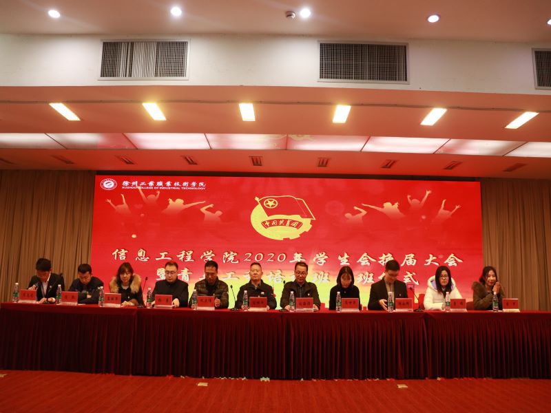 11月23日,信息工程学院2020年学生会换届大会暨青马培训班开班仪式在图书馆报告厅顺利举行。信息工程学院院长陈祥章、党总支书记刘海涛、学工处副处长巩庆伟、校团委副书记庞世华、信息工程学院副院长杨勇、党总支副书记韩永印,各年级辅导员老师出席会议。校学生会、自管会、各二级学院学生会、各学生社团负责人,新一届学生会全体成员共计400余人参加了会议。会议由信息工程学院团总支书记葛志元主持。