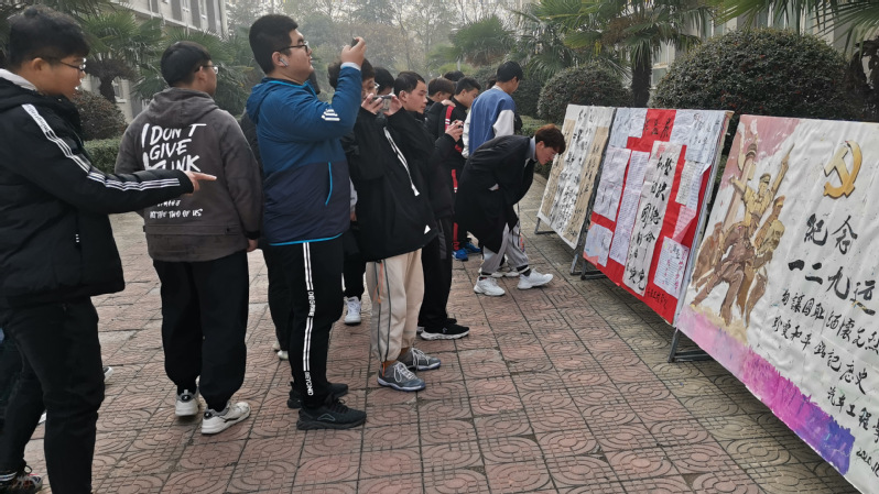 铭记历史,珍爱和平。汽车工程学院学生会组织开展“纪念一二九”运动85周年爱国主义作品展,通过征集的绘画、书法、手抄报等作品向同学们传递正确的家国观、民族观、历史观,让爱国主义成为青年学生的坚定信念和精神依靠。