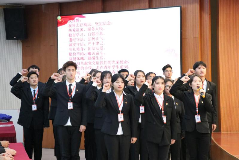 校团委副书记庞世华郑重的为工商管理学院第六届学生会授旗。副院长王志峰老师宣读工商管理学院第六届学生会干部名单。第六届学生会主席张佩佩宣读了本年度学生会工作计划报告,副主席王冰带领全体学生干部宣誓,一句句发自肺腑的铿锵誓词表达着他们为学生服务的坚定信心。
