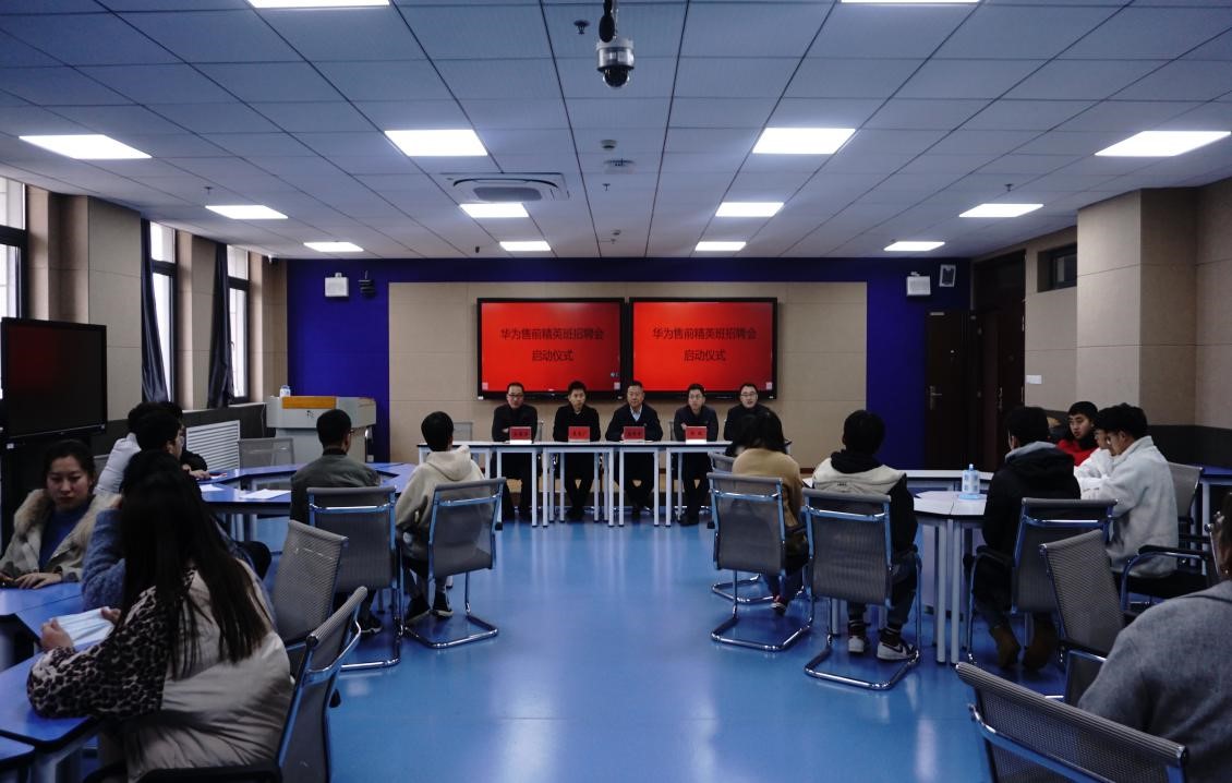 12月11日下午,华为ICT人才联盟面向华为精英班专场招聘会在信息工程学院B18大厅拉开大幕,本次招聘会共有来自全国10多家华为供应链企业参与。江苏华为公司业务副总经理晁文广、华为江苏人才生态总监杨鹏;信息工程学院院长陈祥章、书记刘海涛、副院长杨勇、副书记韩永印及华为精英班全体同学参加启动仪式。