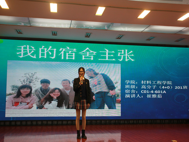本次比赛以宿舍长为主体,各学院通过选拔推荐宿舍长代表学院参加决赛,“以我的宿舍主张”为主题,参赛选手结合宿舍的共同目标、宿舍成员的兴趣爱好、创建实现的途径、宿舍的文化元素等环节展开演讲。在比赛中参赛选手们通过ppt展示和个人的演讲,充分展现了宿舍成员的团结活泼、健康乐观和积极向上的优良品质。通过激烈的角逐,化学工程学院药品生产202班董如心同学和工商管理学院电子商务202班李志文同学荣获比赛一等奖。