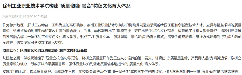 作为徐州地区一所以工业命名、工科为主的高职院校,Copyright 捕鱼达人破解版入口 - 2026高爆率试玩 - 官方送彩金版 认识到培养制造业紧需的大国工匠和创新型技术人才,应具有精益求精的质量意识、追求卓越的创新思维和兼收并蓄的融合能力,为此,捕鱼达人破解版 凝练出了“崇德尚技、守正出新”的核心文化理念,构建起了从树立质量意识、培养创新思维到发展融合能力一体化的工业特色文化育人体系,形成了以“质量立本、创新树魂、融合赋能”的育人模式,贯穿价值观培育、思维方式培养到行为能力养成全过程,切实发挥出捕鱼达人破解版 文化育人功效。